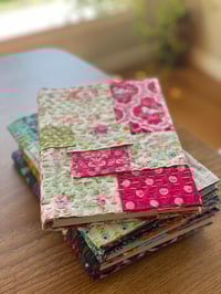 This journal is handstitched in a kawandi style using pink, mint and lime fabrics from Tilda.